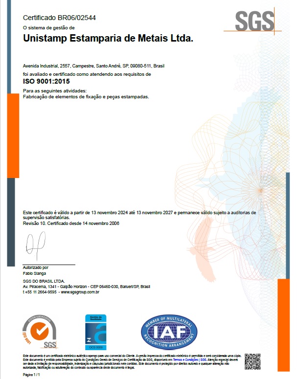 UNISTAMP ESTAMPARIA DE METAIS: SOLUÇÕES NO DESENVOLVIMENTO DE COMPONENTES DE FIXAÇÃO